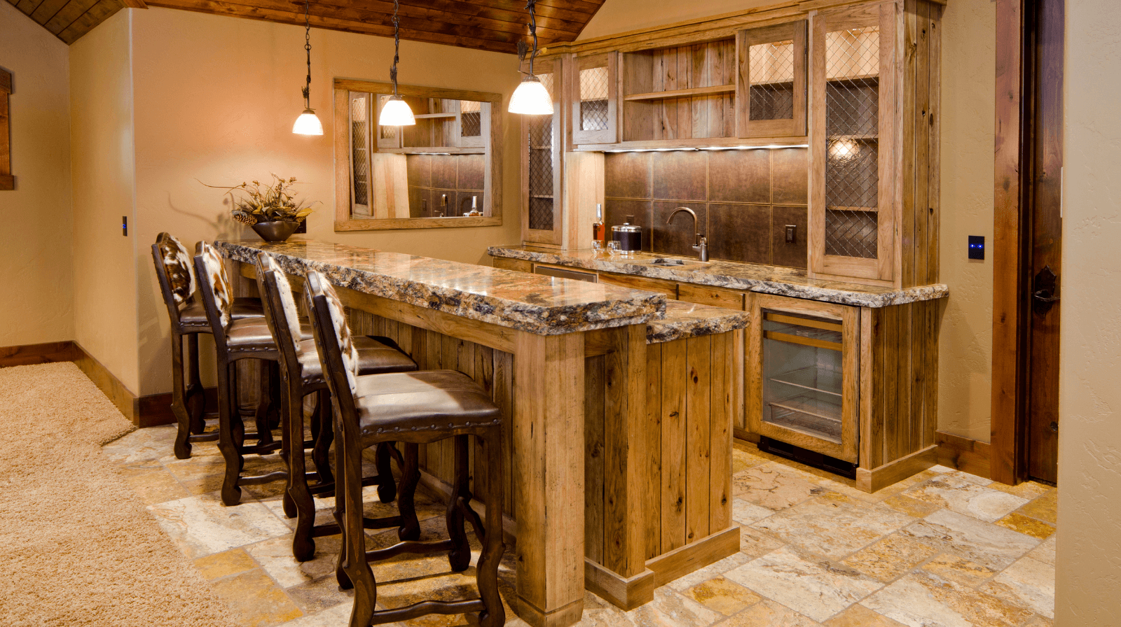 From a wall-sized mural of the Rockies to custom metal signage featuring your family name or favorite whiskey brand, these touches make your space deeply individual.
